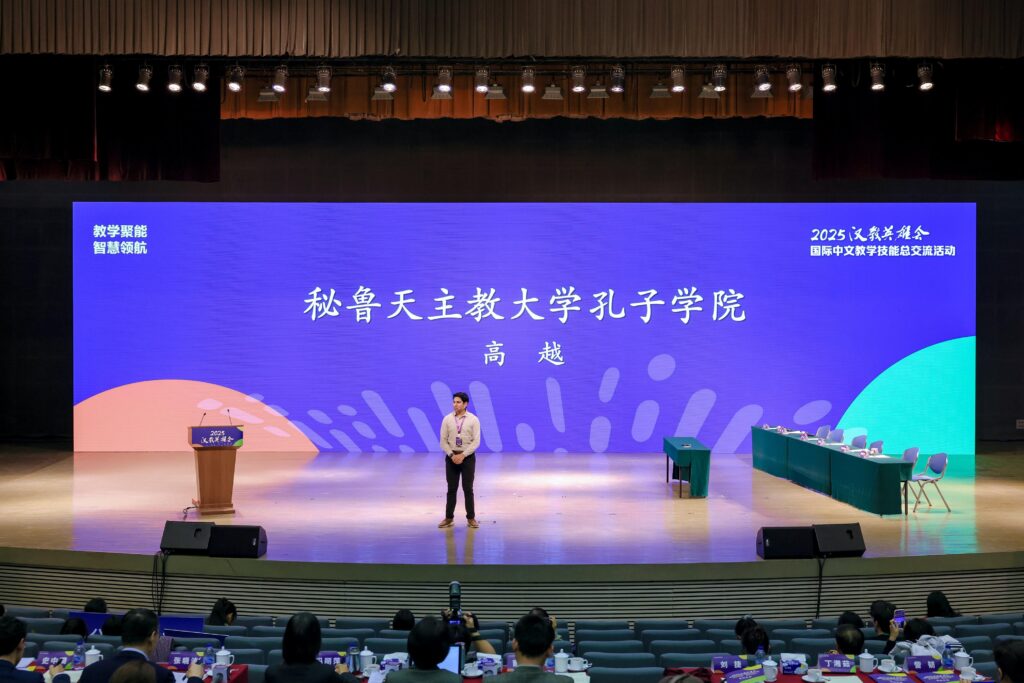 El pasado diciembre, el docente Jozar Gonzales, destacado profesor del Instituto Confucio PUCP, fue reconocido en China durante un encuentro internacional de docentes de lengua china, en el que representó a América Latina por su desempeño pedagógico y estilo de enseñanza.