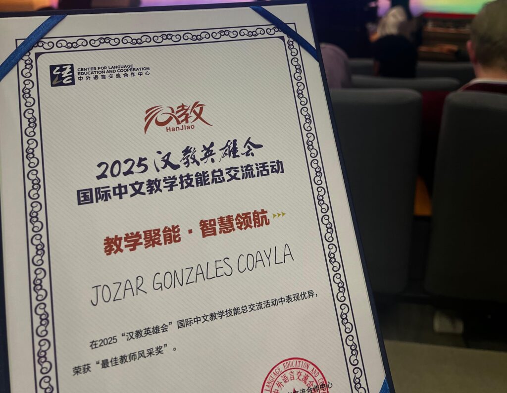 La participación del docente se dio en el marco del International Chinese Teaching Skills Exchange Activity (Han Teaching Heroes’ Gathering), evento organizado por el Center for Language Education and Cooperation (CLEC), que reunió a profesores de distintos países con el objetivo de promover el intercambio de experiencias y buenas prácticas en la enseñanza del chino como lengua extranjera.