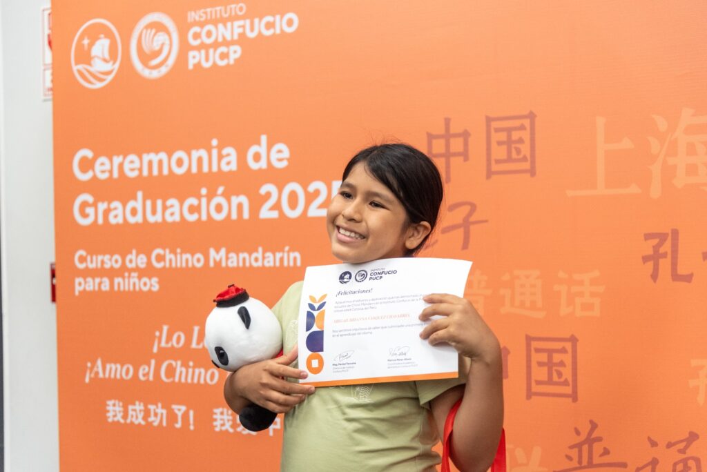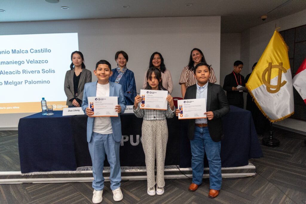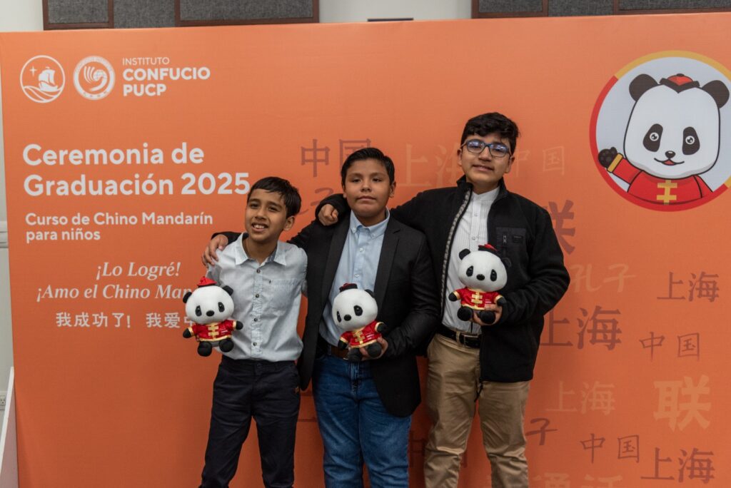 El 25 de octubre se realizó la ceremonia de graduación de la promoción 2025 de los cursos de Chino Mandarín para niños del Instituto Confucio de la Pontificia Universidad Católica del Perú, actividad que marcó el cierre de un año de formación correspondiente al periodo septiembre 2024 – septiembre 2025. La celebración tuvo lugar en el Complejo de Innovación Académica (CIA) y reunió a estudiantes de 5 a 13 años, acompañados por sus familias, quienes fueron testigos del importante avance logrado por los pequeños en su aprendizaje del mandarín.