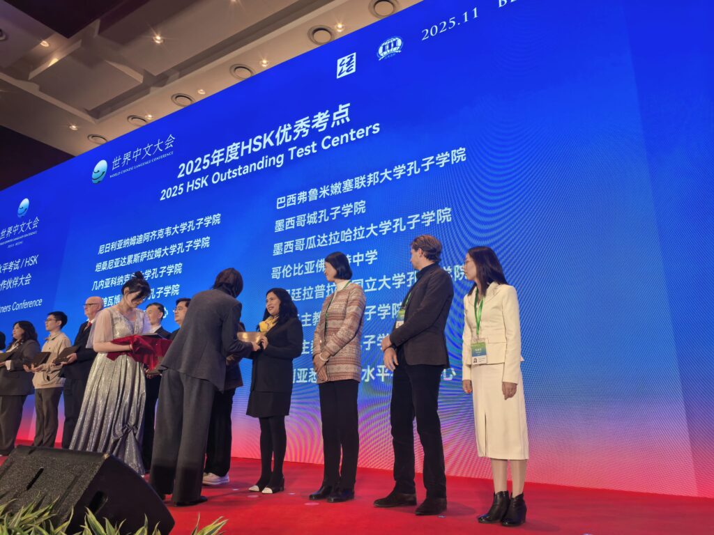 El Instituto Confucio de la Pontificia Universidad Católica del Perú fue distinguido con los premios Excelente Centro de Exámenes Internacionales HSK y Caso Sobresaliente de Aplicación y práctica digital del Instituto Confucio, otorgados durante la Conferencia Mundial de la Lengua China 2025, realizada en Beijing del 14 al 16 de noviembre, del presente. Evento anual organizado por la Fundación Internacional de Educación China.