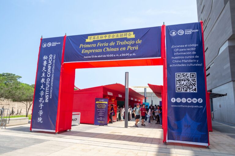 El pasado jueves 13 de abril se realizó Primera Feria de Trabajo de Empresas Chinas en Perú en la Explanada del Aulario del Complejo de Innovación Académica CIA, en el Campus PUCP y contará con la participación de destacadas empresas chinas que operan en nuestro país, que buscan visibilizar las oportunidades laborales que ofrecen permanentemente para personas con conocimientos básicos o avanzados del idioma Chino Mandarín.